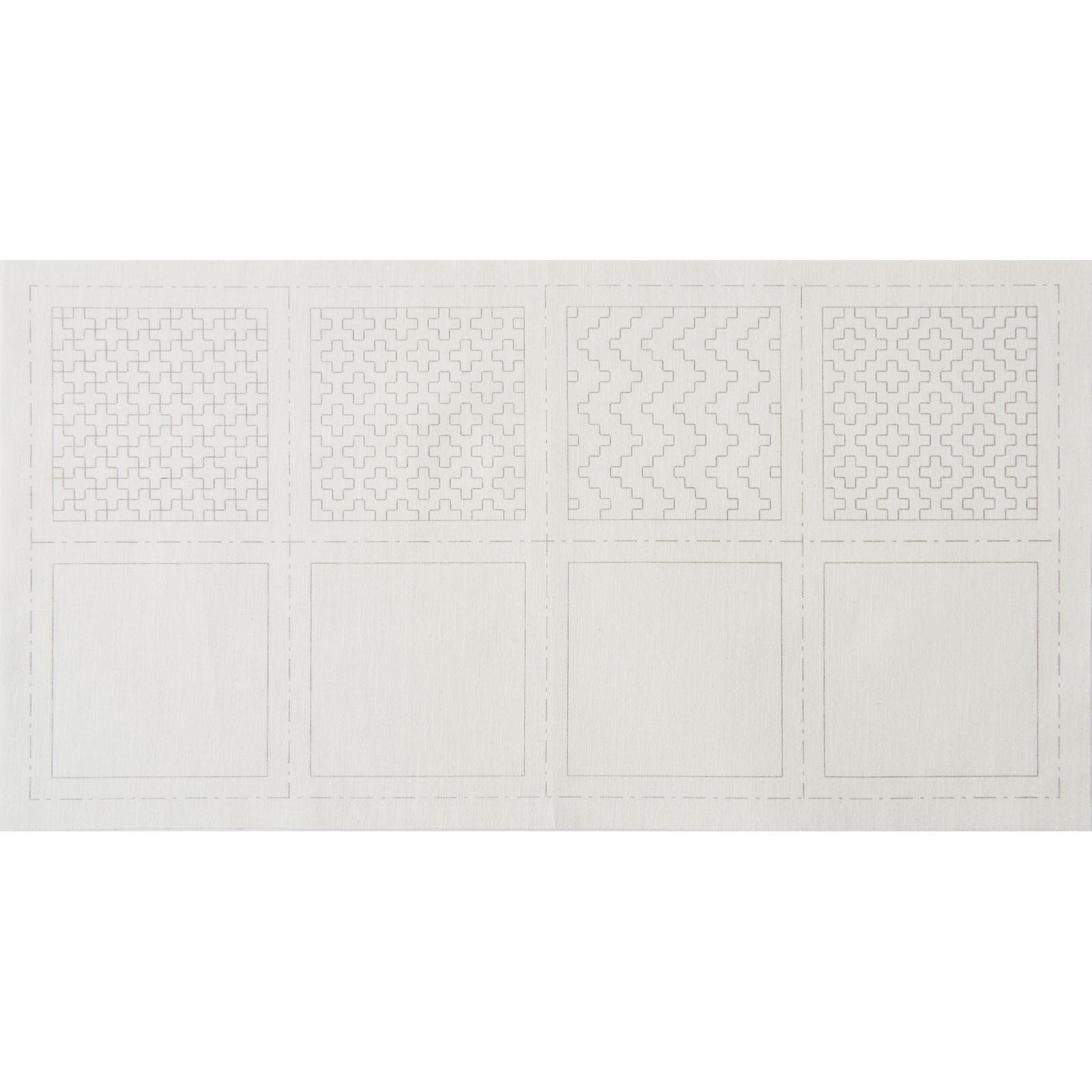 A coaster is small and so makes an easy Sashiko project for a beginner to try. Fabric has pre-printed design and a cutting line on the background. Both will disappear when washed. 4 preprinted coasters per panel.
